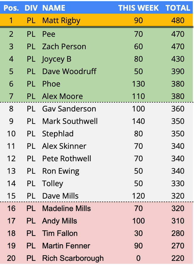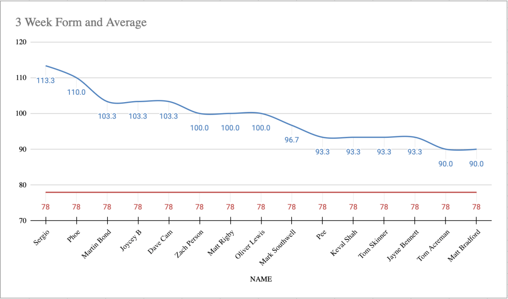 - In form predictor (3 week avg) – New- 1st Week – Sergio Penandes – 113.3 points per game over a rolling 3 week period. PLPL Average over 3 weeks = 78 PPG