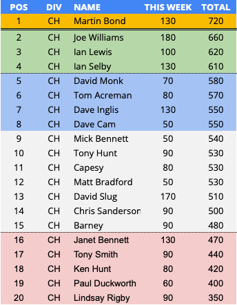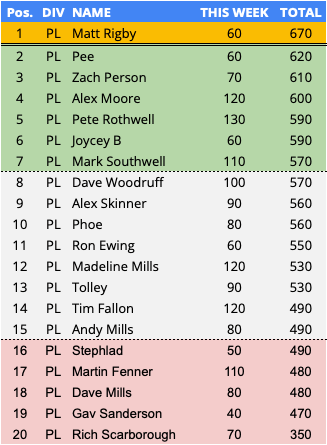 180 Points / 86 points above the average / First PotW award of the season.