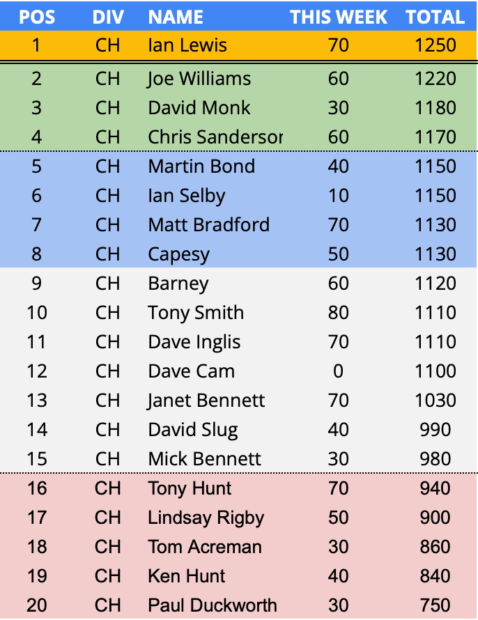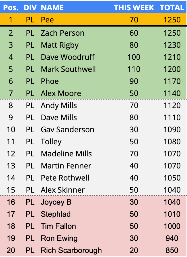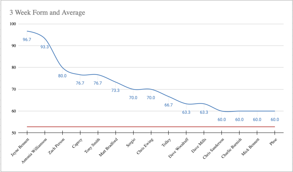 - In form predictor (3 week avg) – New – 1st Week – Jayne Bennett – 96.7 points per game over a rolling 3 week period.