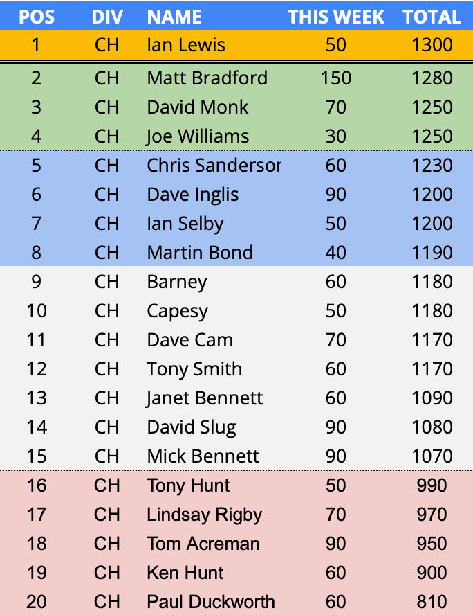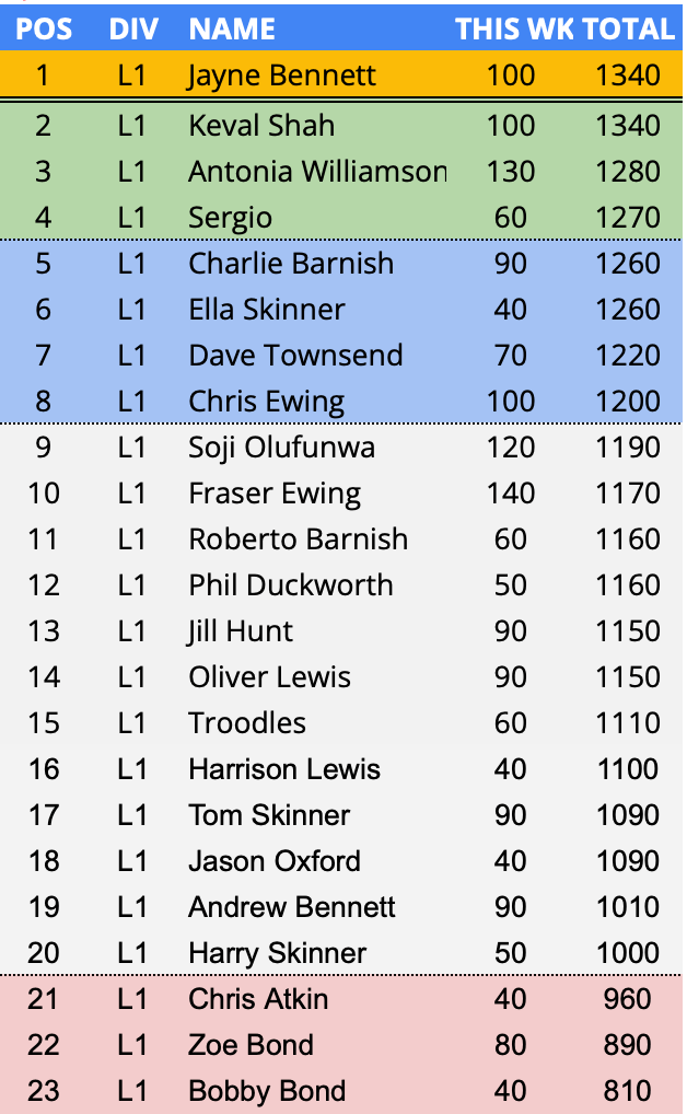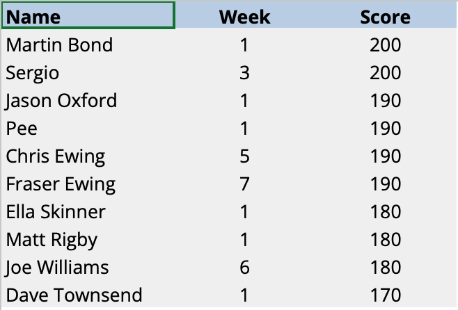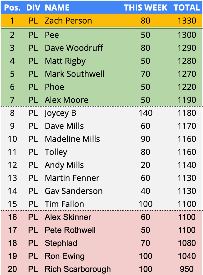 - In form predictor (3 week avg) – New – 1st Week – Antonia Williamson – 120.0 points per game over a rolling 3 week period.