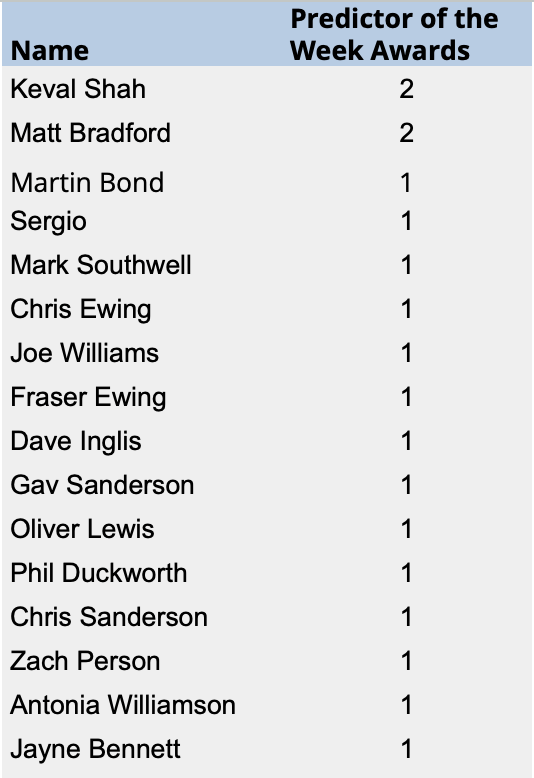 - As you can see above, 1 predictor scored a unique 40 point prediction in the Man City v Spurs game. I regret mocking him at the time of his prediction but Charlie Barnish accurately predicted a 3-3 draw in the game securing 40 points due to Kulusevski’s late equaliser for Spurs.