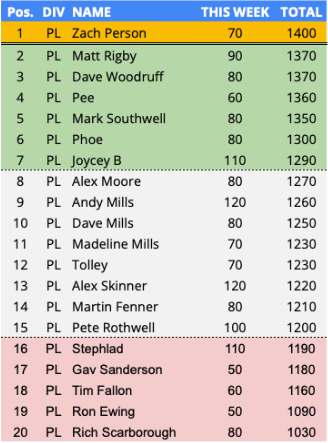 - Weekly Average PLPL Score – 73 Points – Highest in 5 weeks