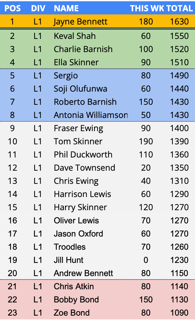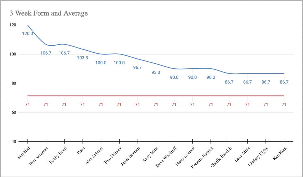 - In form predictor (3 week avg) – New – 1st Week – Steph Barnish – 120.0 points per game over a rolling 3 week period.