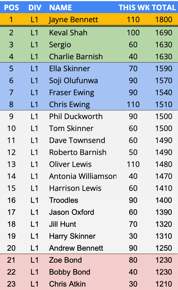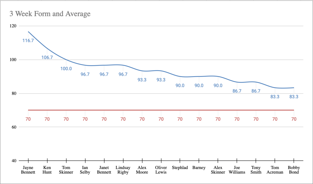 - In form predictor (3 week avg) – New – 1st Week – Jayne Bennett – 116.7 points per game over a rolling 3 week period.