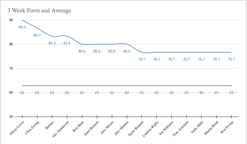 - In form predictor (3 week avg) – New – 1st Week – Oliver Lewis – 90 points per game over a rolling 3 week period.