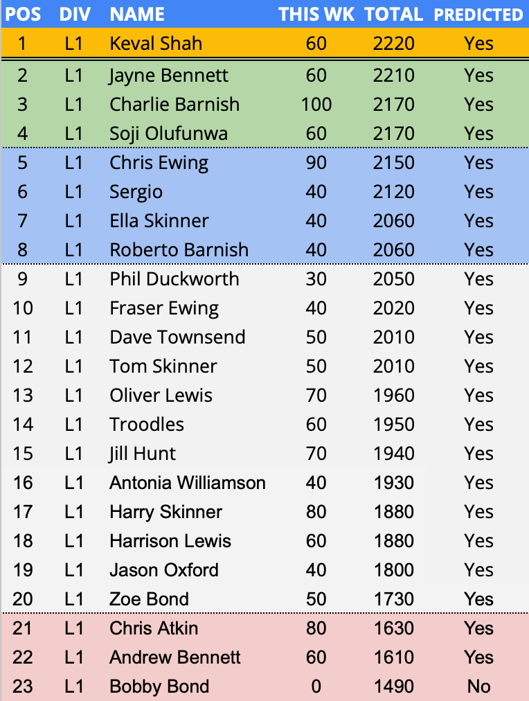 - Charlie Barnish , collected all 40 points across the PLPL from the Man Utd v Fulham game. The only predictor to back Fulham and to accurately predict a 1-2 win.