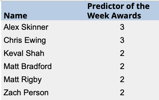 2023-24 Predictor of the Week Table