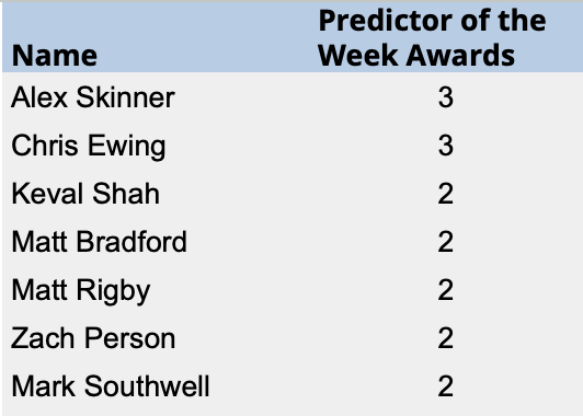 - Keval Shah, despite 27 predictors backing Chelsea to win, only Keval scored a maximum 40 points.
