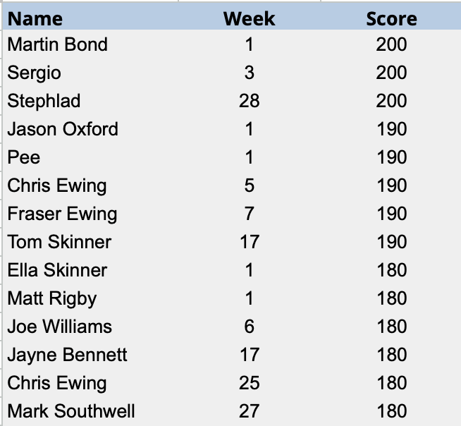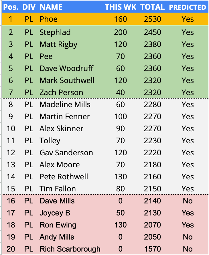 - Ian Lewis , A big game to score maximum points with just 60 points in total scored and Ian collected the only 40 points across the PLPL from the West Ham v Burnley game.