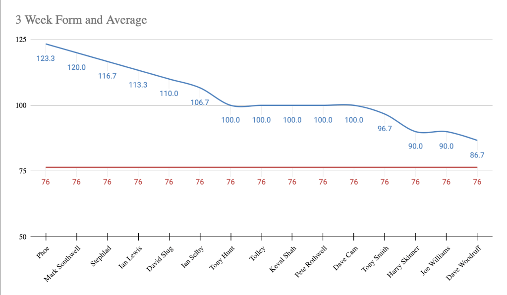 - In form predictor (3 week avg) – 1st Week – Phoe – 123.3 points per game over a rolling 3 week period.