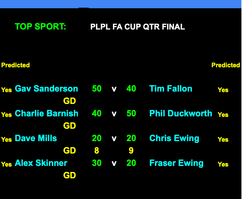 - 2 time predictor of the round Tim Fallon falls to his lowest score of the season in the FA Cup.