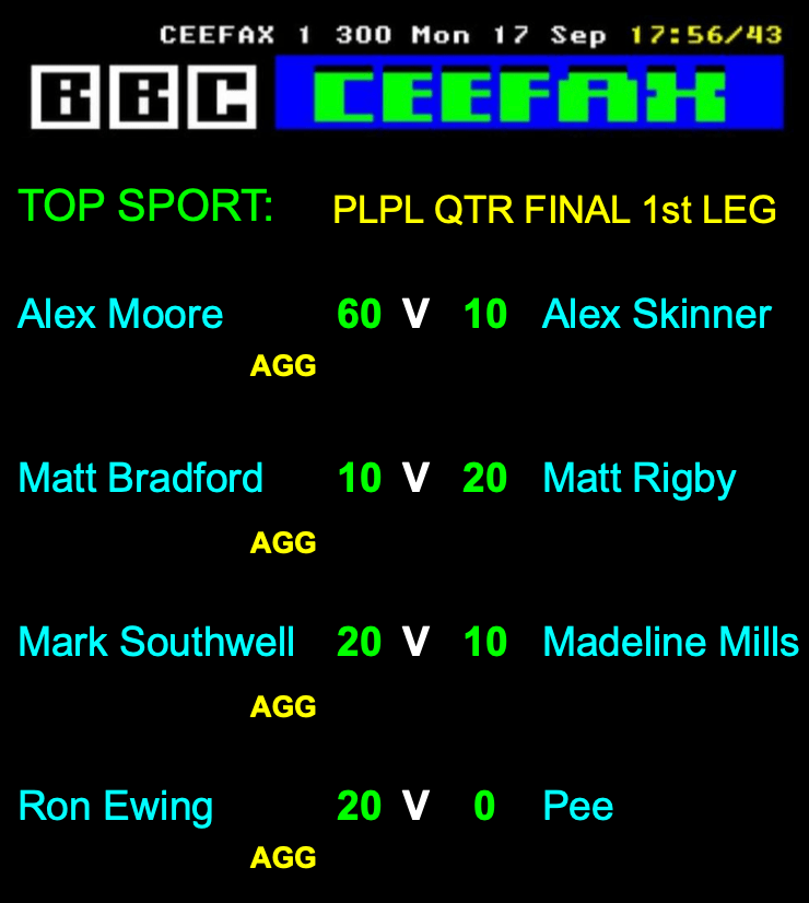 - Mark Southwell four time qtr finalist but never made it past this round looking to go one step further with a ten point advantage in the second legs