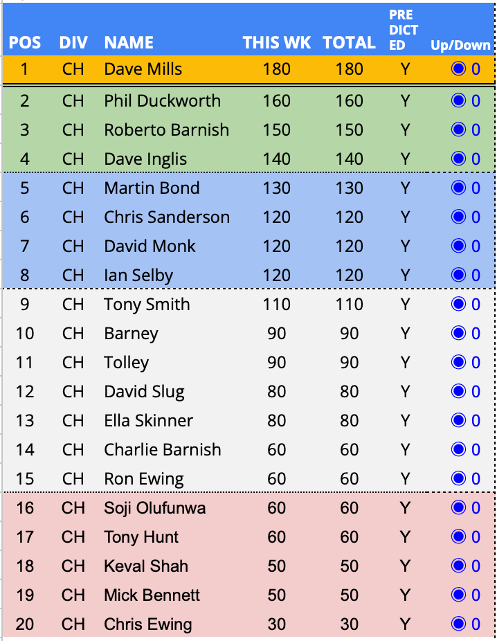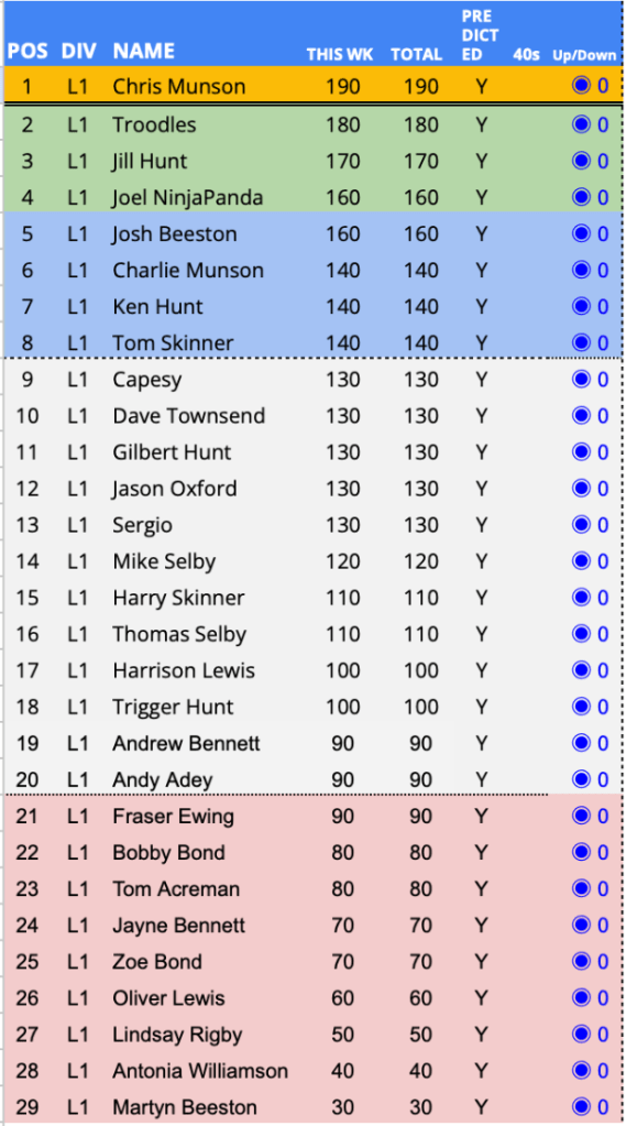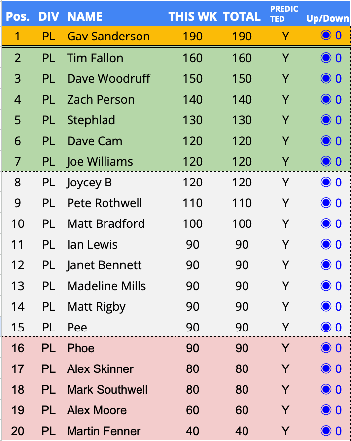 - Brendan Trood, collects the first unique prediction of the season, one of five predictors to predict Spurs to draw away at Leicester but the only predictor to score a maximum 40 points from a 1-1 prediction.