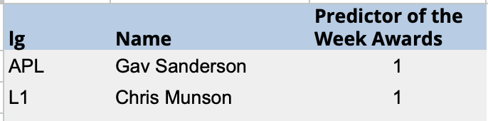 Predictor(s) of the week with 190 Points / 87 points above the average / First Predictor of the week awards of the season