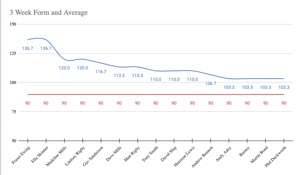 - In form predictor (3 week avg) – New– 1st Week – Fraser Ewing – 136.7 points per week over a rolling 3 week period