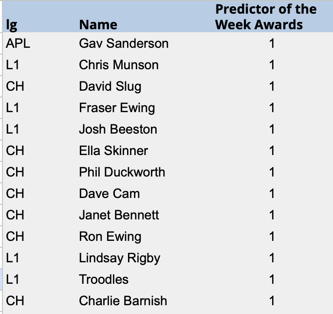 2023-24 Predictor of the Week Table