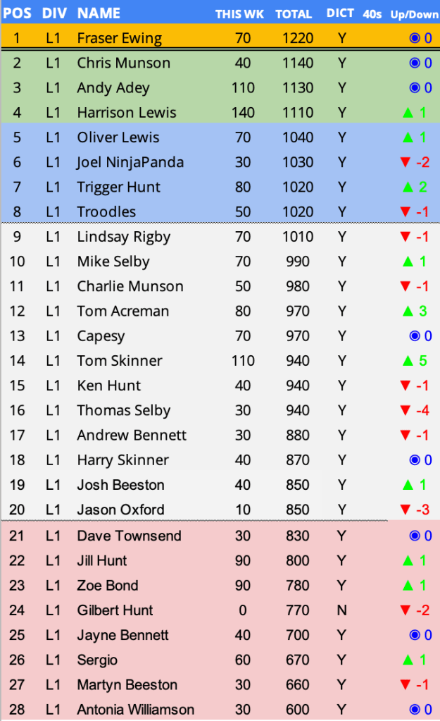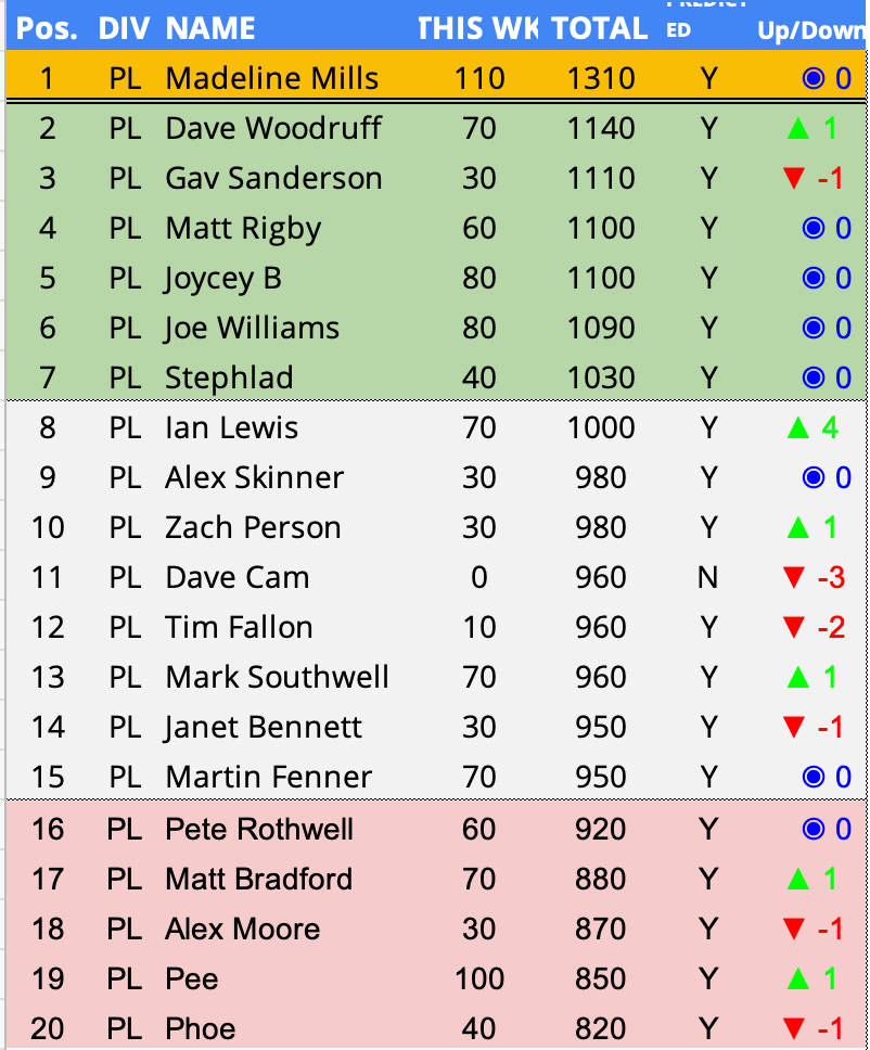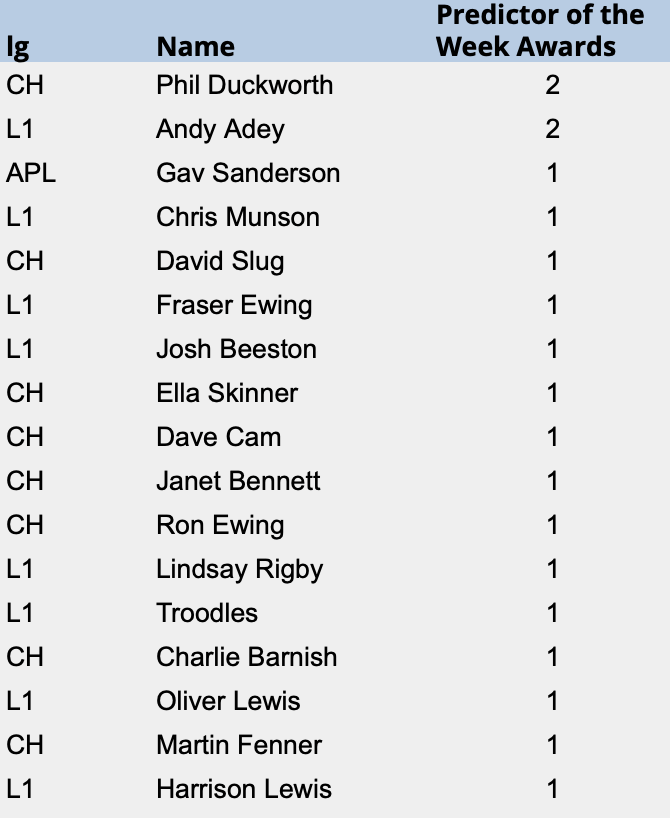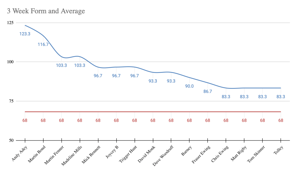 - In form predictor (3 week avg) – New – 1st Week – Andy Adey – 123.3 points per week over a rolling 3 week period