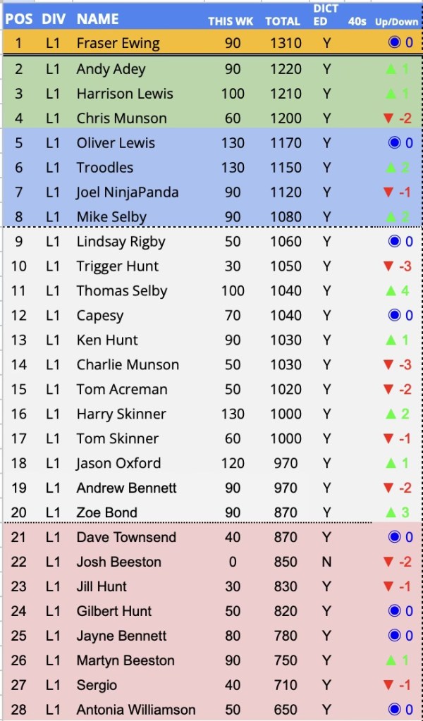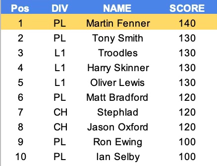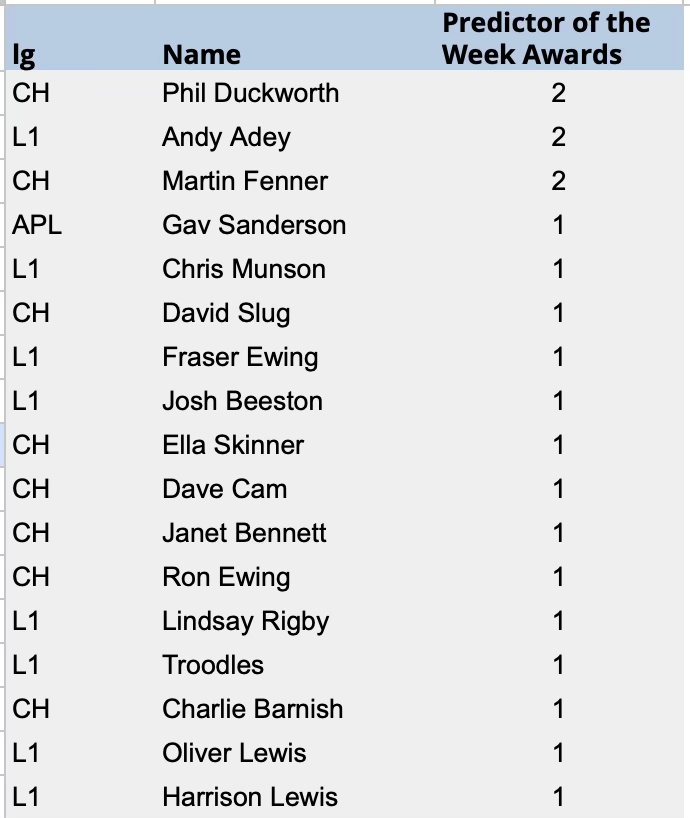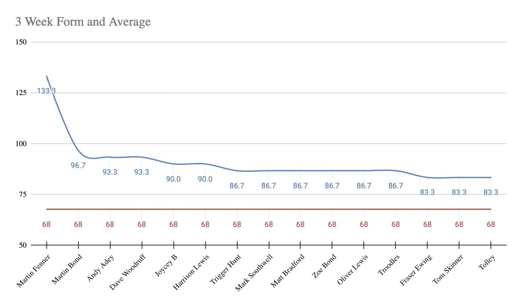 - In form predictor (3 week avg) – New – 1st Week – Martin Fenner – 133.3 points per week over a rolling 3 week period