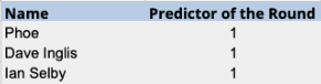 Both David and Ian share Predictor of the Round with 150 Points / 75 points above the average. Both reach the 5th round for the first time in 9 years.