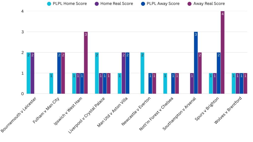 PLPL Average Predictions versus Real Scores