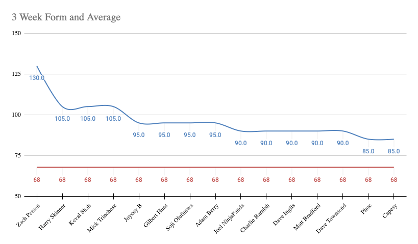 - In Form Predictor (3 Week Average) – Zach Person – 130 Points