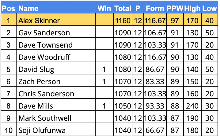- In Form Predictor (3 Week Average) – NEW -Joe Williams- 120 Points