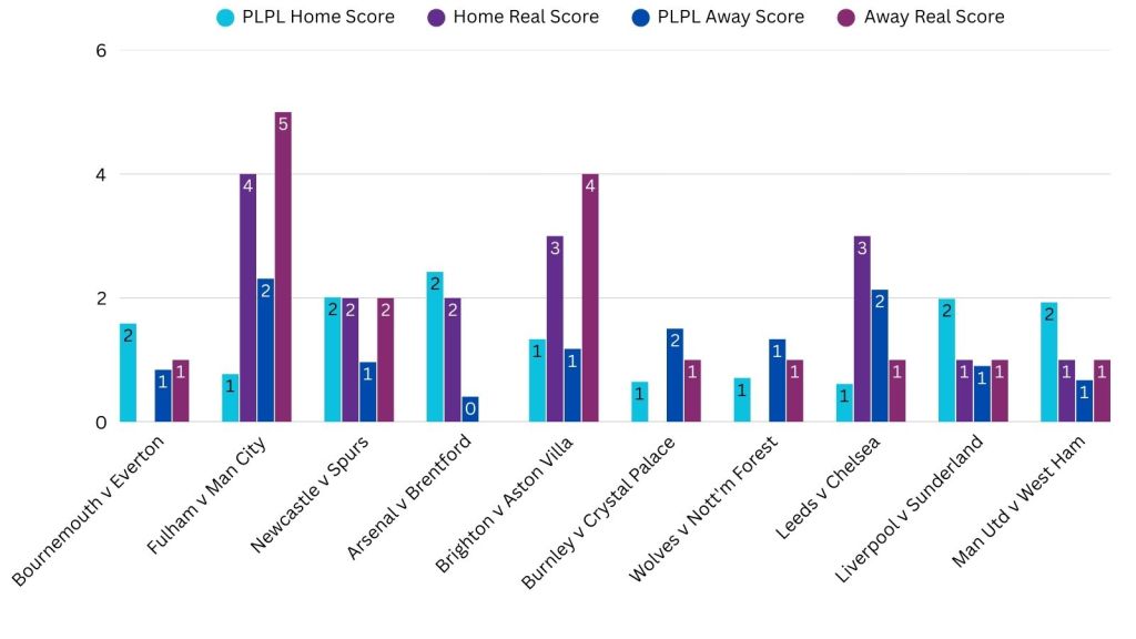 PLPL Average Predictions versus Real Scores