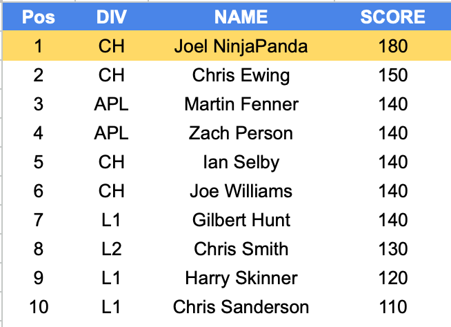 2025-26 High Score Table