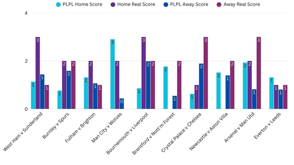 PLPL Average Predictions versus Real Scores