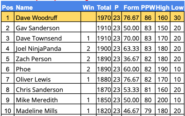 - PPW – Average points per week over the season