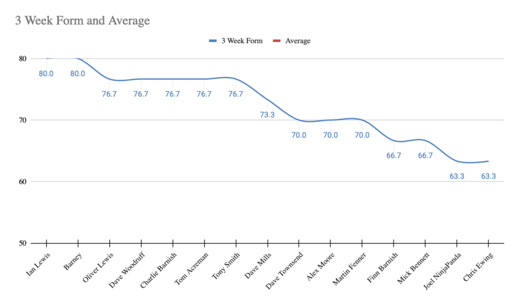 - In Form Predictor (3 Week Average) – New – Ian Lewis – 80 Points