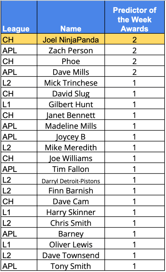 Predictor(s) of the Week