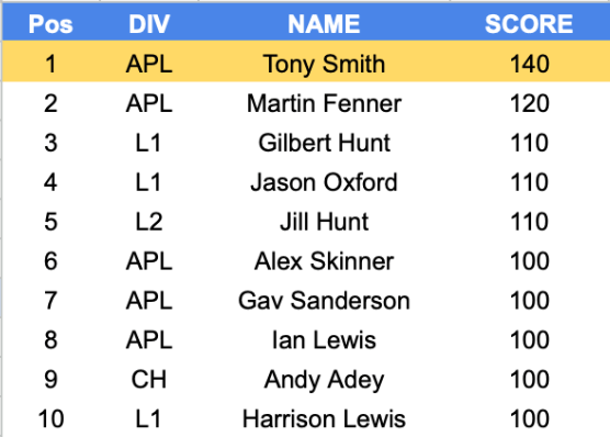 2025-26 High Score Table