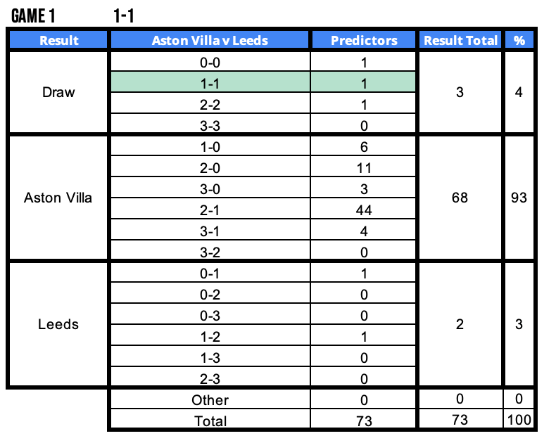 - Phil Duckworth – Aston Villa v Leeds (1-1) . Leeds were on the verge of just their 2nd away win of the season but a late Villa equaliser secured Pip his unique 40 points.