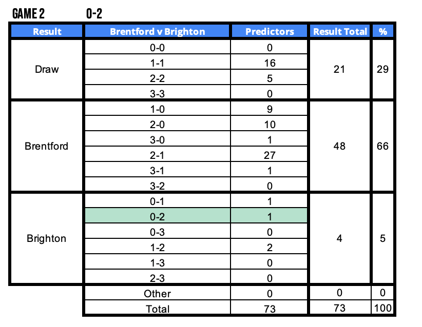 - Zach Person – West Ham v Bournemouth (0-0). Two in form clubs met and a Zach scored a perfect prediction 0-0 for a unique 40 points.
