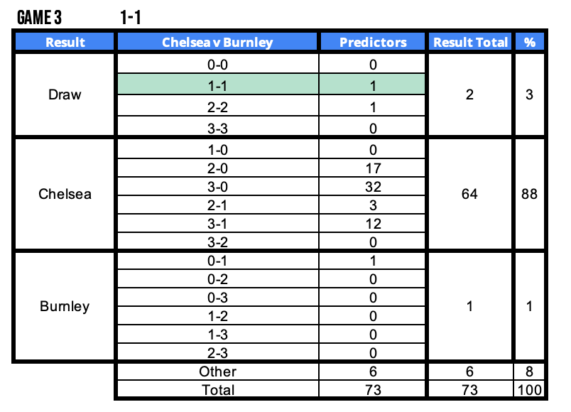 - Lowest Scoring Fixture of the Round – Chelsea v Burnley