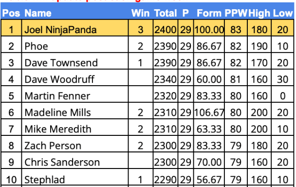 This Weeks Highest Scorers