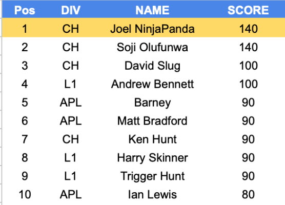2025-26 High Score Table