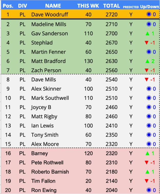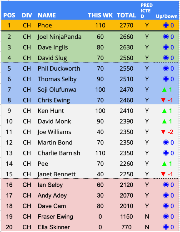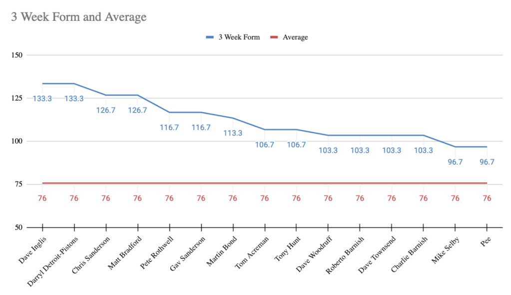 - In Form Predictor (3 Week Average) – 3rd Week – Dave Inglis – 133.3 Points