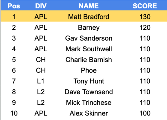 - High – highest recorded score this season